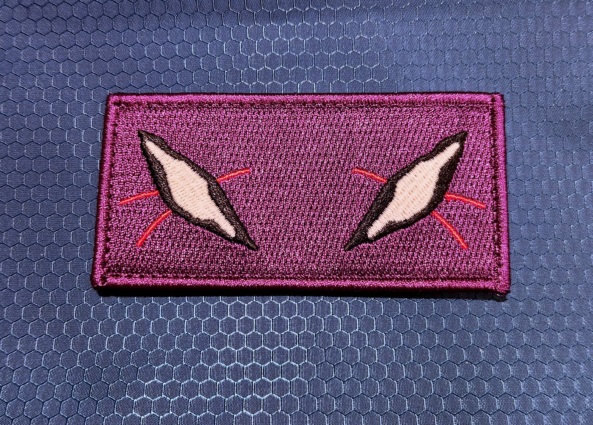 A simplified version of Eva Unit-01's eyes. The white glows in the dark!